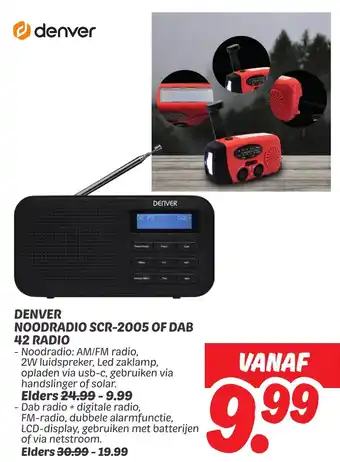 Denver noodradio SCR-2005 OF DAB 42 Radio aanbieding en online acties bij Dekamarkt