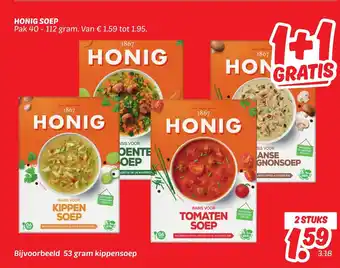 Honig soep, Pak 40 - 112 gram. Van € 1.59 tot 1.95.