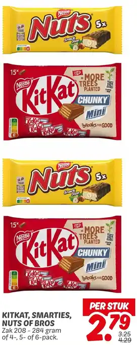 Kitkat, smarties, nuts of bros aanbieding bij Dekamarkt