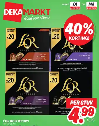 L'or koffiecups aanbieding en online acties bij Dekamarkt