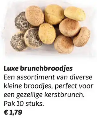 Een assortiment van diverse kleine broodjes, perfect voor een gezellige kerstbrunch. Pak 10 stuks.