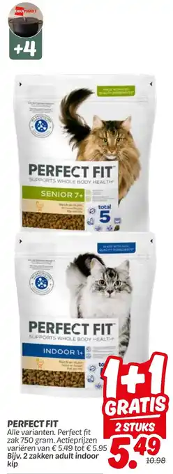Alle varianten. Perfect fit zak 750 gram. Actieprijzen variëren van € 5.49 tot € 5.95 Bijv. 2 zakken adult indoor kip
