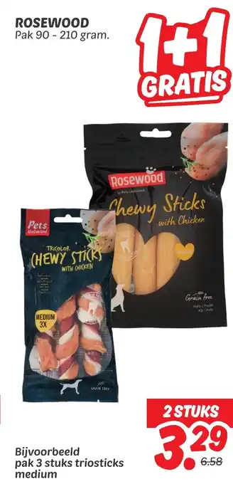 Rosewood Chewy Sticks met Kip 1+1 GRATIS