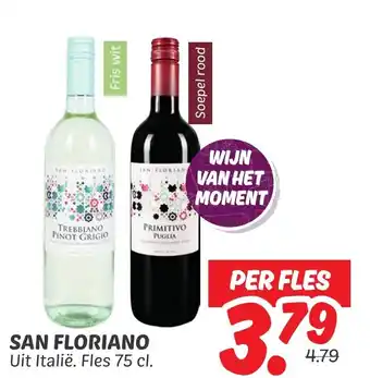 Geniet van de frisse witte Trebbiano Pinot Grigio of de soepel rode Primitivo Puglia van San Floriano. Deze wijnen van het moment komen rechtstreeks uit Italië en zijn verpakt in een fles van 75 cl. De Trebbiano Pinot Grigio is een verfrissende witte wijn met fruitige tonen, terwijl de Primitivo Puglia een zachte rode wijn is met een volle smaak. Beide wijnen zijn perfect om te combineren met diverse gerechten of om gewoon van te genieten tijdens een gezellige avond. Haal nu een fles San Floriano in huis voor slechts 3.79 per fles en ontdek de heerlijke smaken van deze Italiaanse wijnen.