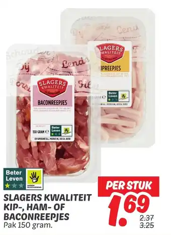 Slagers kwaliteit kip ham-of baconreepjes korting bij Dekamarkt