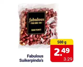 Bekijk de meest recente aanbiedingen en blijf op de hoogte van welke winkels Fabulous Suikerpinda's op korte termijn met korting aanbieden. Niemand betaalt graag te veel – daarom houden wij de prijzen scherp in de gaten. Pas je (boodschappen)lijst aan op basis van acties van deze week én verwachte deals. Sommige aanbiedingen gelden alleen in de winkel, dus check regelmatig waar Fabulous Suikerpinda's het voordeligst verkrijgbaar is.Veelgestelde vragen over Fabulous Suikerpinda's