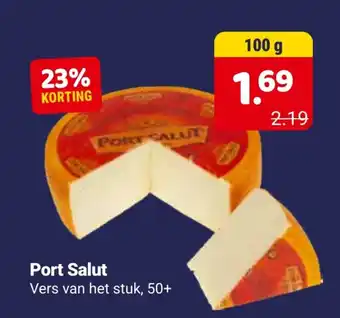 Geniet nu van een heerlijke korting van 23% op Port Salut kaas. Deze romige kaas heeft een milde smaak en is perfect voor op brood of bij de borrel. Vers van het stuk en geschikt voor liefhebbers van 50+. Normaal gesproken kost deze kaas €2.19 per 100 gram, maar met de korting betaal je slechts €1.69. Profiteer snel van deze aanbieding en haal de smaakvolle Port Salut kaas in huis. Of geef het cadeau aan een kaasliefhebber in je omgeving. Deze aanbieding is tijdelijk, dus wacht niet te lang met bestellen. Bestel nu en geniet binnenkort van deze heerlijke kaas!