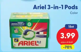 De aanbieding is verkrijgbaar in verschillende winkels, bekijk alle producten om de goedkoopste Ariel 3-in-1 Pods te krijgen. Als je graag wilt kijken of het artikel met meer korting te koop is in een andere winkel, bekijk de categorie 'Discount'. Wellicht vind je deze aanbiedingen ook interessant: Ariel Pods, Ariel 3 in 1 pods color & Ariel Pods 3in1 original.