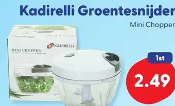De Kadirelli Groentesnijder is een handige Mini Chopper waarmee je snel en eenvoudig groenten kunt snijden. Met deze compacte en betaalbare groentesnijder van Kadirelli wordt het bereiden van maaltijden een fluitje van een cent. De Mini Chopper is voorzien van scherpe messen en een krachtige motor, waardoor je moeiteloos allerlei soorten groenten kunt hakken en snijden. Dankzij het compacte formaat neemt de groentesnijder weinig ruimte in beslag in je keukenkastje of op het aanrecht. De Kadirelli Groentesnijder is ideaal voor het maken van salades, soepen, stoofschotels en nog veel meer. Bestel nu deze handige Mini Chopper voor slechts €2.49 en ontdek het gemak van snel en efficiënt groenten snijden!