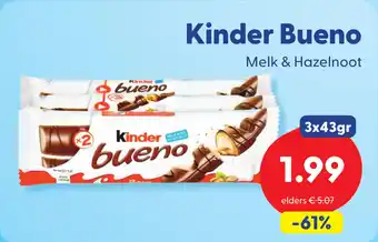 De aanbieding is verkrijgbaar in verschillende winkels, bekijk alle producten om de goedkoopste Kinder Bueno te krijgen. Als je graag wilt kijken of het artikel met meer korting te koop is in een andere winkel, bekijk de categorie 'Discount'. Wellicht vind je deze aanbiedingen ook interessant: Kinder Bueno 43g 2x, Kinder Bueno & Kinder Chocolate.