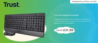 De Trust Trezo toetsenbord & muisset is momenteel met korting verkrijgbaar bij Digitotaal. Hier vind je alle details over prijs, geldigheidsduur en actievoorwaarden. Vergeet niet om ook andere aanbiedingen en deals voor Trust Trezo toetsenbord & muisset te bekijken zodat je zeker weet dat je de beste prijs betaalt. De kortingsactie loopt van 19-01-2026 tot 01-02-2026. Is de actie inmiddels verlopen? Geen zorgen, vergelijk dan soortgelijke aanbiedingen of volg de productcategorie voor toekomstige prijsverlagingen. Zo koop je altijd met voordeel.Veelgestelde vragen over Trust Trezo toetsenbord & muisset
