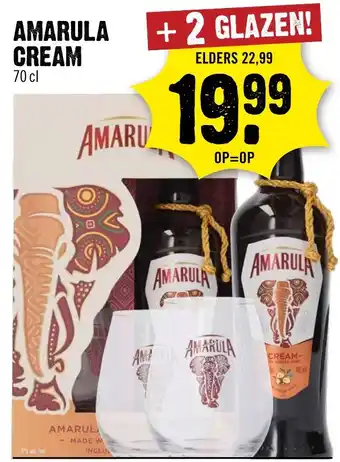 Geniet van de heerlijke smaak van Amarula Cream met deze speciale aanbieding! Deze fles Amarula Cream van 70 cl wordt geleverd met 2 gratis glazen, perfect om te delen met vrienden of om cadeau te geven. Elders betaal je 22,99 voor deze set, maar bij ons is het OP=OP. Amarula Cream wordt gemaakt van de exotische Marula vrucht en heeft een romige, zoete smaak met tonen van karamel en vanille. Inclusief 2 glazen om direct van te genieten. Mis deze kans niet om voordelig te genieten van de heerlijke smaak van Amarula Cream!