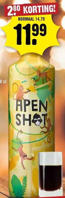 Feest shotjes! Apen shot 70 cl NU 11,99 ipv 14,79 280 KORTING!