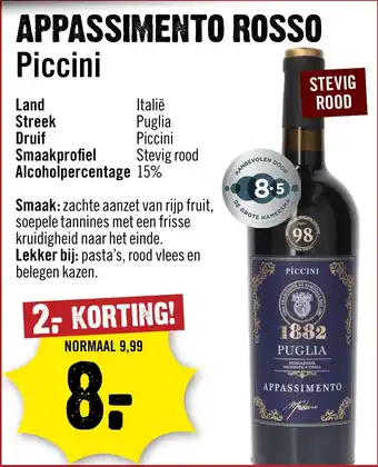 Nu in de aanbieding bij Dirck 3: Appassimento Rosso Piccini✅ Actie geldig van 1-01 t/m 6-01.