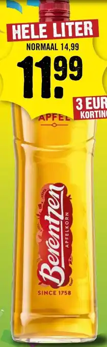 Berentzen Apfelkorn - Hele liter met korting van 3 euro