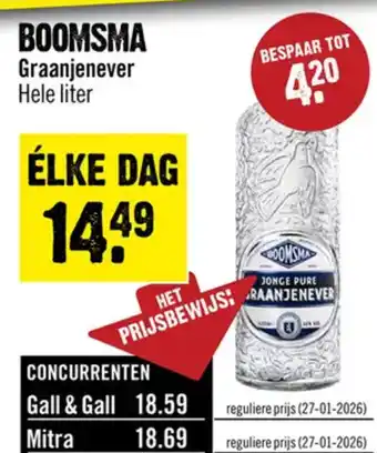 De prijs van de Boomsma graanjenever kan ook teruggevonden worden hierboven op de pagina, samen met de datum van wanneer de aanbieding beschikbaar is. Ook kun je de prijzen in de huidige Dirck 3 folder of op de Dirck 3 website controleren. De aanbiedingen verzekeren je van het kopen van de Dirck 3 producten voor de laagste prijs.