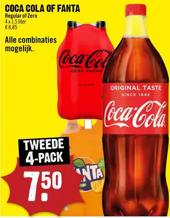Coca Cola of Fanta 4 x 1,5 liter voor €8,85 - Alle combinaties mogelijk