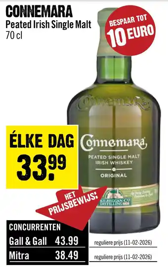 Connemara Peated Irish Single Malt is een originele en unieke whisky van de Kilbeggan Co Distilling. Deze peated single malt heeft een rijke en rokerige smaak die typisch is voor Ierse whiskey. Bij Gall & Gall kost deze fles normaal gesproken 43.99, maar bij Mitra kun je hem nu krijgen voor slechts 38.49. Bespaar tot wel 10 euro op deze heerlijke Connemara whisky en geniet elke dag van de unieke smaak. Laat het prijsbewijs zien aan je vrienden en concurrenten en laat ze kennismaken met deze voortreffelijke Ierse whisky. Proef de traditionele smaken van Connemara en ontdek waarom deze whisky zo geliefd is onder kenners.