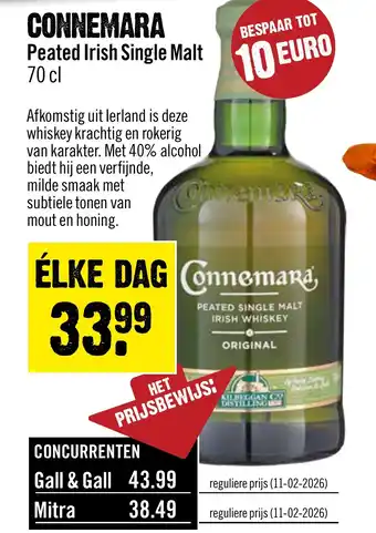 De prijs van de Connemara peated irish single malt kan ook teruggevonden worden hierboven op de pagina, samen met de datum van wanneer de aanbieding beschikbaar is. Ook kun je de prijzen in de huidige Dirck 3 folder of op de Dirck 3 website controleren. De aanbiedingen verzekeren je van het kopen van de Dirck 3 producten voor de laagste prijs.