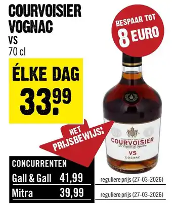 Geniet van de heerlijke smaak van Courvoisier V.S. Cognac, nu voor een geweldige prijs van slechts 33.99. Bespaar tot wel 8 euro ten opzichte van de reguliere prijs bij concurrenten zoals Gall & Gall (41,99) en Mitra (39,99). Deze aanbieding geldt ELKE DAG, dus grijp snel je kans om te profiteren van deze fantastische deal. Courvoisier staat bekend om zijn kwaliteit en vakmanschap, en met deze V.S. Cognac haal je een echte topper in huis. Of je nu zelf wilt genieten van een glaasje of op zoek bent naar een mooi cadeau, met Courvoisier V.S. Cognac zit je altijd goed. Mis deze kans niet en bestel vandaag nog!