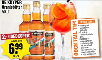 DE ENIGE ECHTE Oranjebitter van DE KUYPER, anno 1695. Een feestelijke borrel met een koninklijke touch. Elders 8,99, maar bij ons 2- GOEDKOPER! OP=OP! Geniet van deze bittere smaak in een Oranje Spritz cocktail. Vul een groot, wijnglas met ijsblokjes, schenk de Oranjebitter in het glas en voeg prosecco toe. Top af met bruiswater, roer voorzichtig door en garneer met een schijfje sinaasappel. Een heerlijke cocktail tip voor elke gelegenheid. KUYPER staat garant voor kwaliteit en traditie, dus mis deze kans niet om te genieten van een heerlijke en verfrissende borrel met DE KUYPER Oranjebitter.