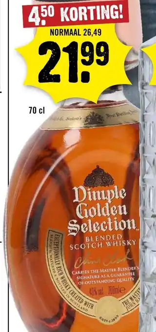 Dirck 3 biedt naast de Dimple Golden Selection een ruime collectie producten aan. Houd de wekelijkse Dirck 3 folder in de gaten om de beste aanbiedingen en acties te vinden. Naast Dimple Golden Selection, kunt u ook de volgende aanbiedingen vinden: Dimple Golden Selection, Dimple whisky & Dimple whisky.