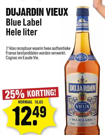 De prijs van de Dujardin Vieux 100 cl kan ook teruggevonden worden hierboven op de pagina, samen met de datum van wanneer de aanbieding beschikbaar is. Ook kun je de prijzen in de huidige Dirck 3 folder of op de Dirck 3 website controleren. De aanbiedingen verzekeren je van het kopen van de Dirck 3 producten voor de laagste prijs.