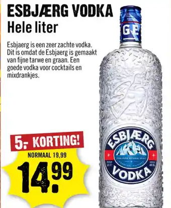 Dirck 3 biedt naast de ESBJÆRG Vodka een ruime collectie producten aan. Houd de wekelijkse Dirck 3 folder in de gaten om de beste aanbiedingen en acties te vinden. Naast ESBJÆRG Vodka, kunt u ook de volgende aanbiedingen vinden: Esbjaerg vodka, Esbjaerg Vodka 100CL & Esbjaerg Vodka.