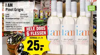 De prijs van de I am pinot grigio kan ook teruggevonden worden hierboven op de pagina, samen met de datum van wanneer de aanbieding beschikbaar is. Ook kun je de prijzen in de huidige Dirck 3 folder of op de Dirck 3 website controleren. De aanbiedingen verzekeren je van het kopen van de Dirck 3 producten voor de laagste prijs.