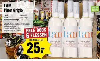De prijs van de I am pinot grigio kan ook teruggevonden worden hierboven op de pagina, samen met de datum van wanneer de aanbieding beschikbaar is. Ook kun je de prijzen in de huidige Dirck 3 folder of op de Dirck 3 website controleren. De aanbiedingen verzekeren je van het kopen van de Dirck 3 producten voor de laagste prijs.