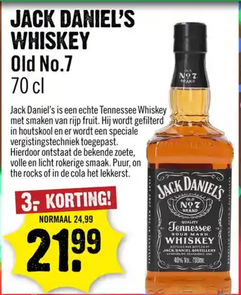 Deze Jack Daniel's whiskey is nu in de aanbieding bij Dirck 3. Bekijk ook andere lopende acties en bespaar met scherpe prijzen of online deals. Bestel Jack Daniel's whiskey via Dirck 3 website of koop het product met korting in een winkel bij jou in de buurt. Op Folderz.nl verzamelen we dagelijks de beste Jack Daniel's whiskey aanbiedingen. Klik op het belletje om een gratis melding te ontvangen zodra er weer een nieuwe actie of prijsverlaging voor Jack Daniel's whiskey beschikbaar is.Veelgestelde vragen over Jack Daniel's whiskey