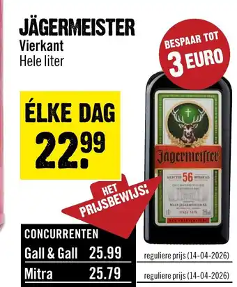 De Jagermeister Vierkant is momenteel met korting verkrijgbaar bij Dirck 3. Hier vind je alle details over prijs, geldigheidsduur en actievoorwaarden. Vergeet niet om ook andere aanbiedingen en deals voor Jagermeister Vierkant te bekijken zodat je zeker weet dat je de beste prijs betaalt. De kortingsactie loopt van 22-04-2026 tot 28-04-2026. Is de actie inmiddels verlopen? Geen zorgen, vergelijk dan soortgelijke aanbiedingen of volg de productcategorie voor toekomstige prijsverlagingen. Zo koop je altijd met voordeel.Veelgestelde vragen over Jagermeister Vierkant