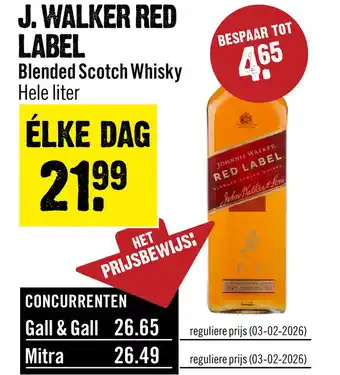 Deze Johnnie Walker Red Label Whisky 100 cl is nu in de aanbieding bij Dirck 3. Op deze pagina vind je alle informatie over actuele prijzen, actievoorwaarden en looptijd. Vergelijk ook andere relevante aanbiedingen en acties rondom Johnnie Walker Red Label Whisky 100 cl, zodat je altijd de slimste keuze maakt. De aanbieding loopt van 11-03-2026 tot en met 17-03-2026. Is de actie verlopen? Geen probleem – vergelijkbare deals vind je altijd via deze pagina. Volg eventueel de productcategorie om automatisch op de hoogte te blijven van nieuwe aanbiedingen of prijsdalingen voor Johnnie Walker Red Label Whisky 100 cl.Veelgestelde vragen over Johnnie Walker Red Label Whisky 100 cl