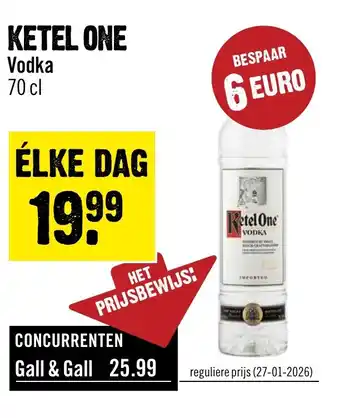 De prijs van de Ketel one kan ook teruggevonden worden hierboven op de pagina, samen met de datum van wanneer de aanbieding beschikbaar is. Ook kun je de prijzen in de huidige Dirck 3 folder of op de Dirck 3 website controleren. De aanbiedingen verzekeren je van het kopen van de Dirck 3 producten voor de laagste prijs.