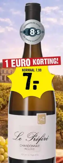 Nu in de aanbieding bij Dirck 3: Le Prefere Chardonnay Reserve✅ Actie geldig van 18-02 t/m 24-02.