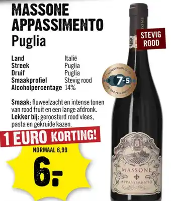 Nu in de aanbieding bij Dirck 3: Massone Appassimento Puglia✅ Actie geldig van 18-02 t/m 24-02.