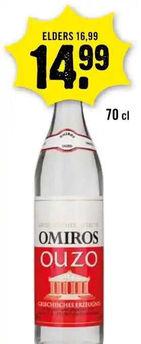 De aanbieding is verkrijgbaar in verschillende winkels, bekijk alle producten om de goedkoopste Omiros ouzo te krijgen. Als je graag wilt kijken of het artikel met meer korting te koop is in een andere winkel, bekijk de categorie 'Slijters'. Wellicht vind je deze aanbiedingen ook interessant: Omiros Ouzo 70 cl, Omiros Feta & aanbieding 3.