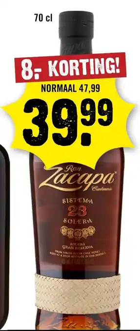 De aanbieding is verkrijgbaar in verschillende winkels, bekijk alle producten om de goedkoopste Ron Zacapa te krijgen. Als je graag wilt kijken of het artikel met meer korting te koop is in een andere winkel, bekijk de categorie 'Slijters'. Wellicht vind je deze aanbiedingen ook interessant: Ron cubay, aanbieding 2 & aanbieding 3.