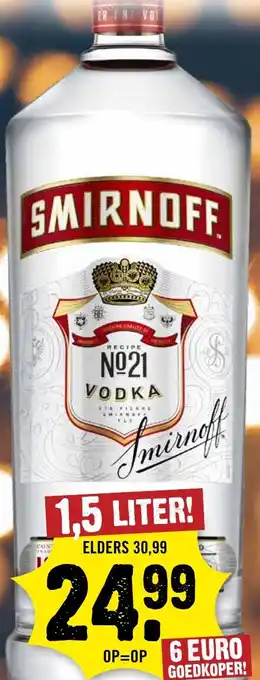 Smirnoff Vodka Nº21 1.5 Liter - Elders 30,99, Hier $24.99 OP=OP 6 Euro Goedkoper!