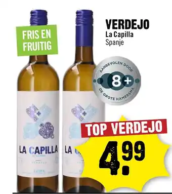 De Verdejo La Capilla Spanje is momenteel met korting verkrijgbaar bij Dirck 3. Hier vind je alle details over prijs, geldigheidsduur en actievoorwaarden. Vergeet niet om ook andere aanbiedingen en deals voor Verdejo La Capilla Spanje te bekijken zodat je zeker weet dat je de beste prijs betaalt. De kortingsactie loopt van 22-04-2026 tot 28-04-2026. Is de actie inmiddels verlopen? Geen zorgen, vergelijk dan soortgelijke aanbiedingen of volg de productcategorie voor toekomstige prijsverlagingen. Zo koop je altijd met voordeel.Veelgestelde vragen over Verdejo La Capilla Spanje