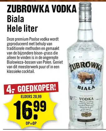 Nu in de aanbieding bij Dirck 3: Zubrowka vodka biala hele liter✅ Actie geldig van 4-03 t/m 10-03.