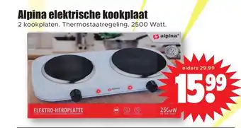 De prijs van de Alpina elektrische kookplaat kan ook teruggevonden worden hierboven op de pagina, samen met de datum van wanneer de aanbieding beschikbaar is. Ook kun je de prijzen in de huidige Dirk folder of op de Dirk website controleren. De aanbiedingen verzekeren je van het kopen van de Dirk producten voor de laagste prijs.
