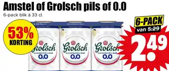 Amstel of Grolsch pils of 0.0 6-pack blik à 33 cl KORTING