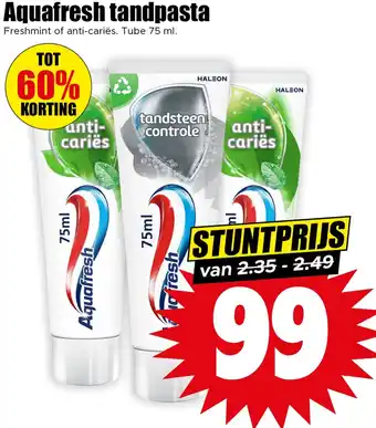 De prijs van de Aquafresh tandpasta kan ook teruggevonden worden hierboven op de pagina, samen met de datum van wanneer de aanbieding beschikbaar is. Ook kun je de prijzen in de huidige Dirk folder of op de Dirk website controleren. De aanbiedingen verzekeren je van het kopen van de Dirk producten voor de laagste prijs.