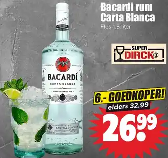 Nu in de aanbieding bij Dirk: Bacardi rum Carta Blanca✅ Actie geldig van 27-02 t/m 1-03.