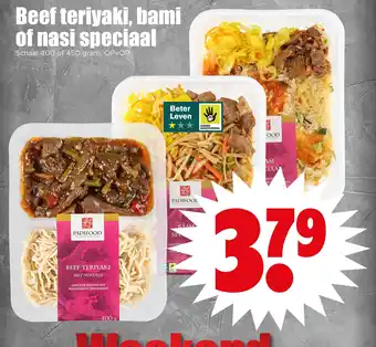 Beef teriyaki, bami of nasi speciaal aanbieding bij Dirk