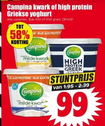 Campina kwark of high protein Griekse yoghurtCampina kwark of high protein Griekse yoghurt aanbieding en online acties bij Dirk
