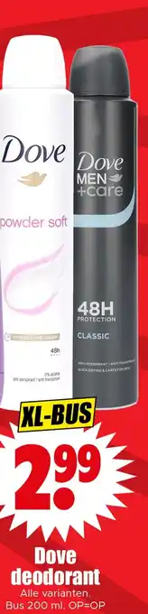 Ontdek de Dove deodorant met 48 uur bescherming en XL-bus van 200 ml. Deze anti-transpirant zorgt voor een quick drying effect en verzorgt tegelijkertijd de huid. De moisturising cream in de deodorant zorgt voor een zachte en verzorgde huid. Met 0% alcohol en verkrijgbaar in alle varianten. Profiteer nu van de aanbieding voor slechts 2.99. Wees er snel bij, want OP=OP! Kies voor de klassieke Dove deodorant of ga voor de MEN +care variant. Vertrouw op de betrouwbare werking van Dove en geniet van een fris gevoel gedurende de hele dag. Bestel nu en ervaar zelf de kwaliteit van Dove deodorant.