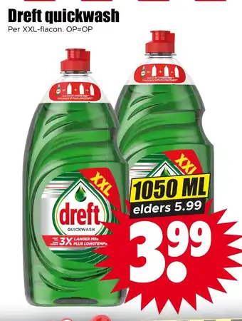 De prijs van de Dreft Quickwash kan ook teruggevonden worden hierboven op de pagina, samen met de datum van wanneer de aanbieding beschikbaar is. Ook kun je de prijzen in de huidige Dirk folder of op de Dirk website controleren. De aanbiedingen verzekeren je van het kopen van de Dirk producten voor de laagste prijs.