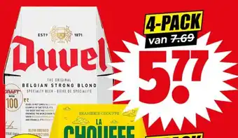 Duvel is niet zomaar een klassiek voorbeeld van de stijl, het is het bier dat brouwers over de hele wereld heeft geïnspireerd om Belgische sterke blond ales te brouwen. Het is perfectie in een fles, langzaam gebrouwen door de Moortgat familie sinds 1871. Duvel is het origineel, Belgisch sterk blond speciaalbier van Brasserie Duvel Moortgat. Met een alcoholpercentage van 8,5% is het een krachtige en verfrissende keuze. Probeer Duvel van de tap voor een nog intensere ervaring. La Chouffe is een ander voorbeeld van Belgische brouwkunst, met zijn unieke smaak en karakter. Geniet van een Duvel 4-PACK voor slechts 7.69 en ontdek de wereld van Belgisch speciaalbier.